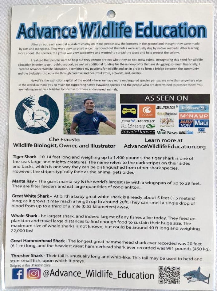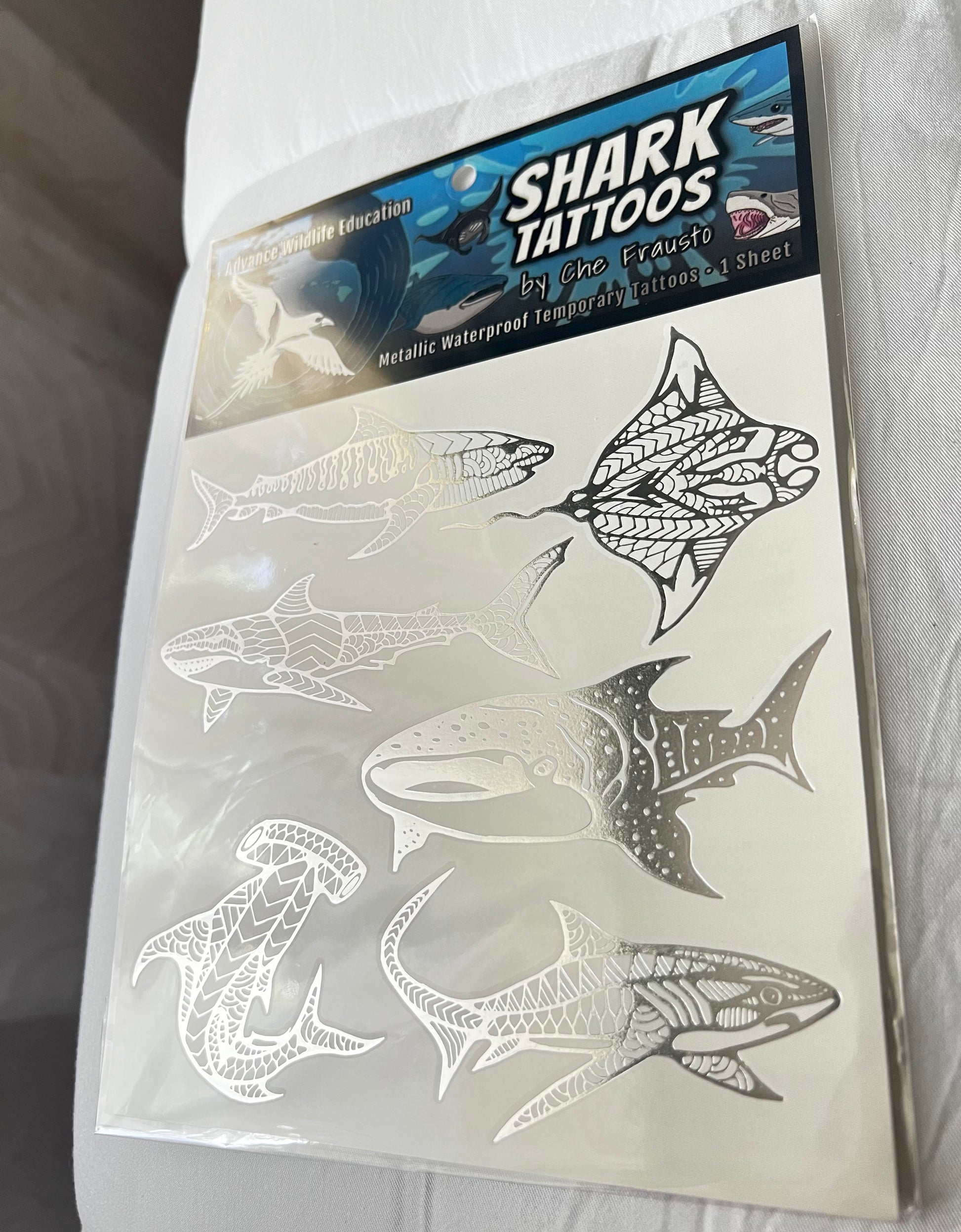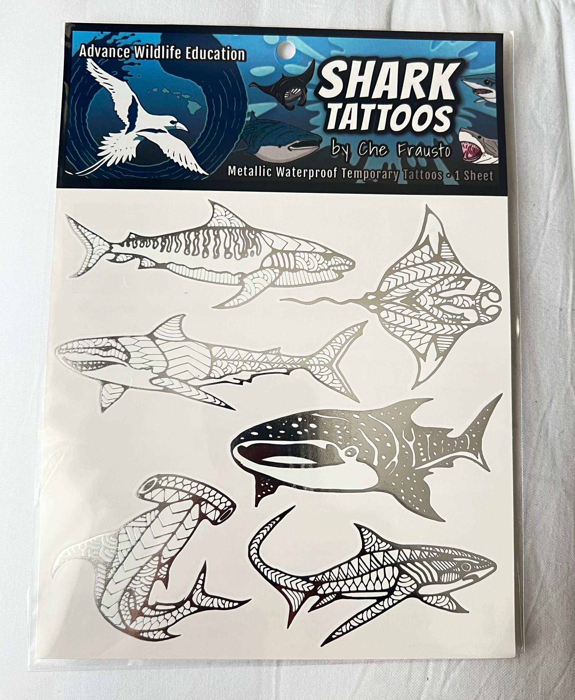 The back of the tattoo sheet provides educational information about each shark species, dispelling common myths and highlighting their ecological importance. Waterproof and long-lasting, these metallic tattoos are perfect for ocean enthusiasts, marine biology fans, or anyone who wants to make a stylish statement while supporting shark conservation. Your purchase contributes to Advanced Wildlife Education's efforts to protect sharks through education and awareness programs.
