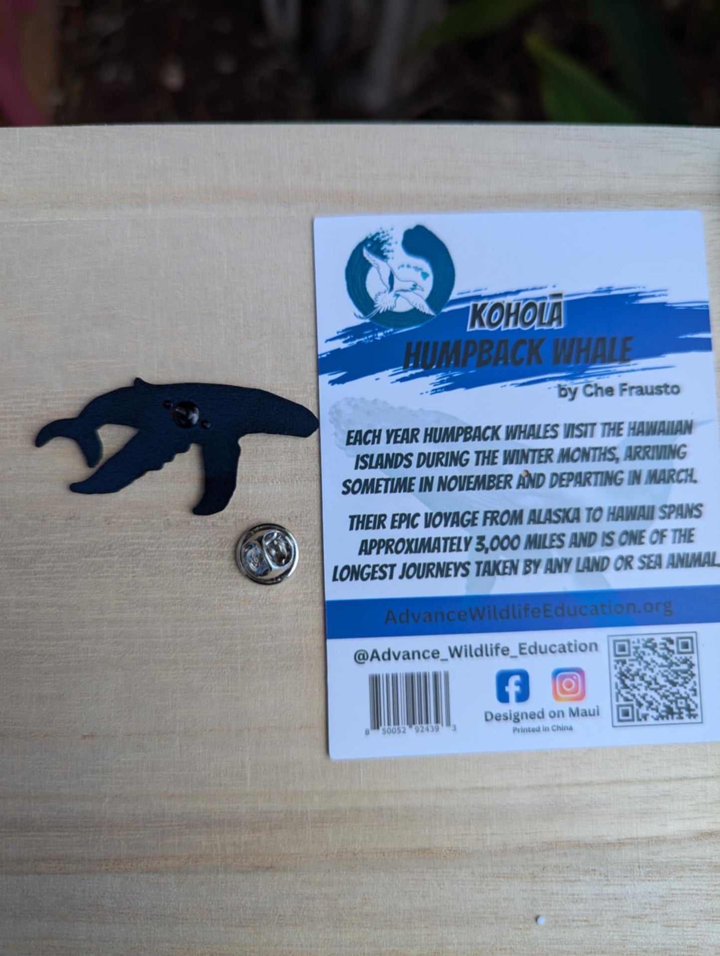 The accompanying display card includes fascinating facts about humpback whales and their annual migration. By purchasing this pin, you're supporting Advanced Wildlife Education's efforts to protect marine habitats and educate the public about these incredible animals. Wear this pin proudly as a conversation starter about marine conservation and the importance of protecting these majestic creatures for future generations.