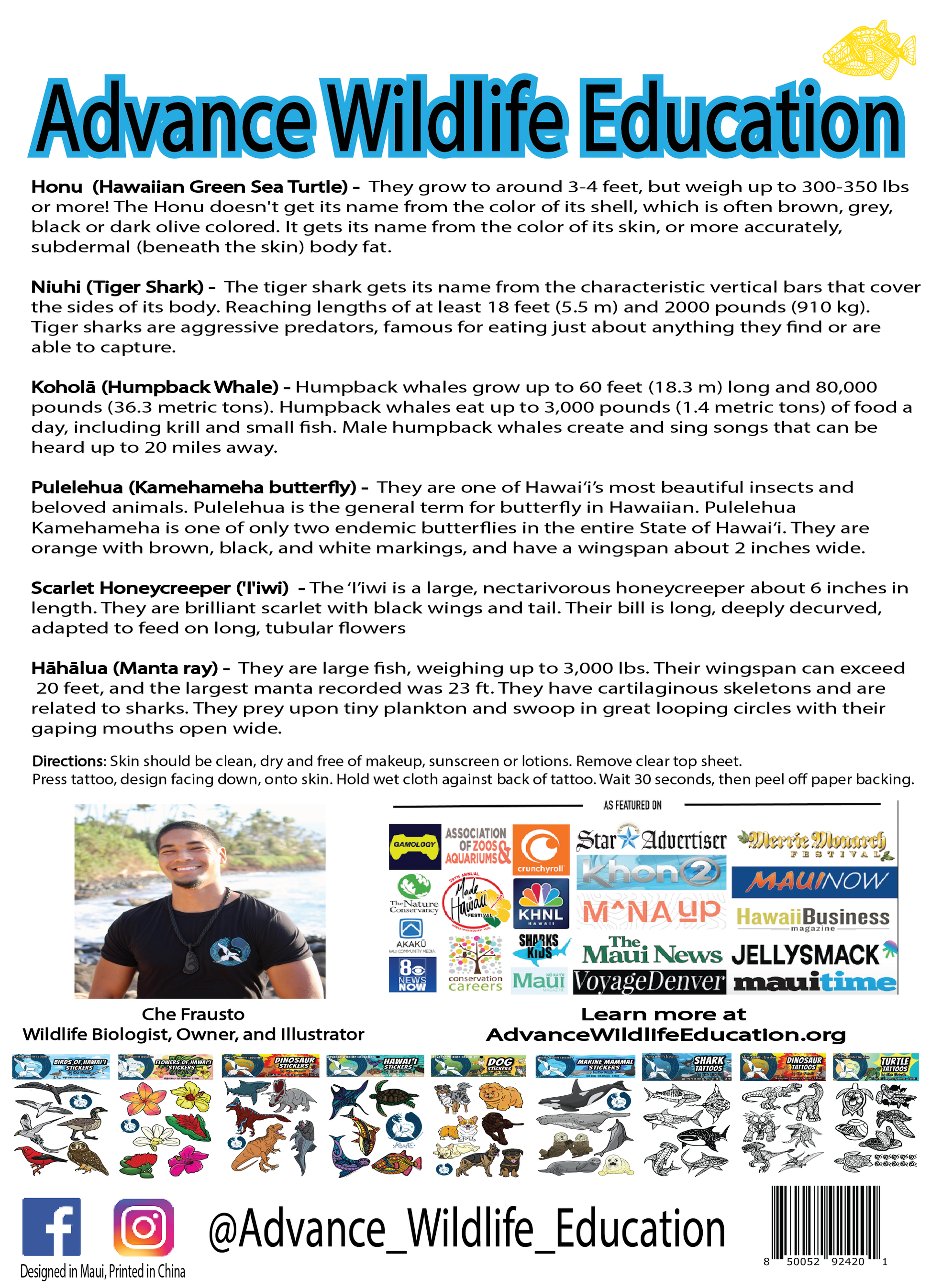Waterproof and long-lasting, these temporary tattoos are perfect for beach days, festivals, luaus, or anytime you want to add a golden touch of island style to your look. The back of the sheet includes educational information about the significance of each design. Easy to apply and remove, these luxurious gold tattoos let you express your love for Hawaii while supporting wildlife education and conservation efforts.