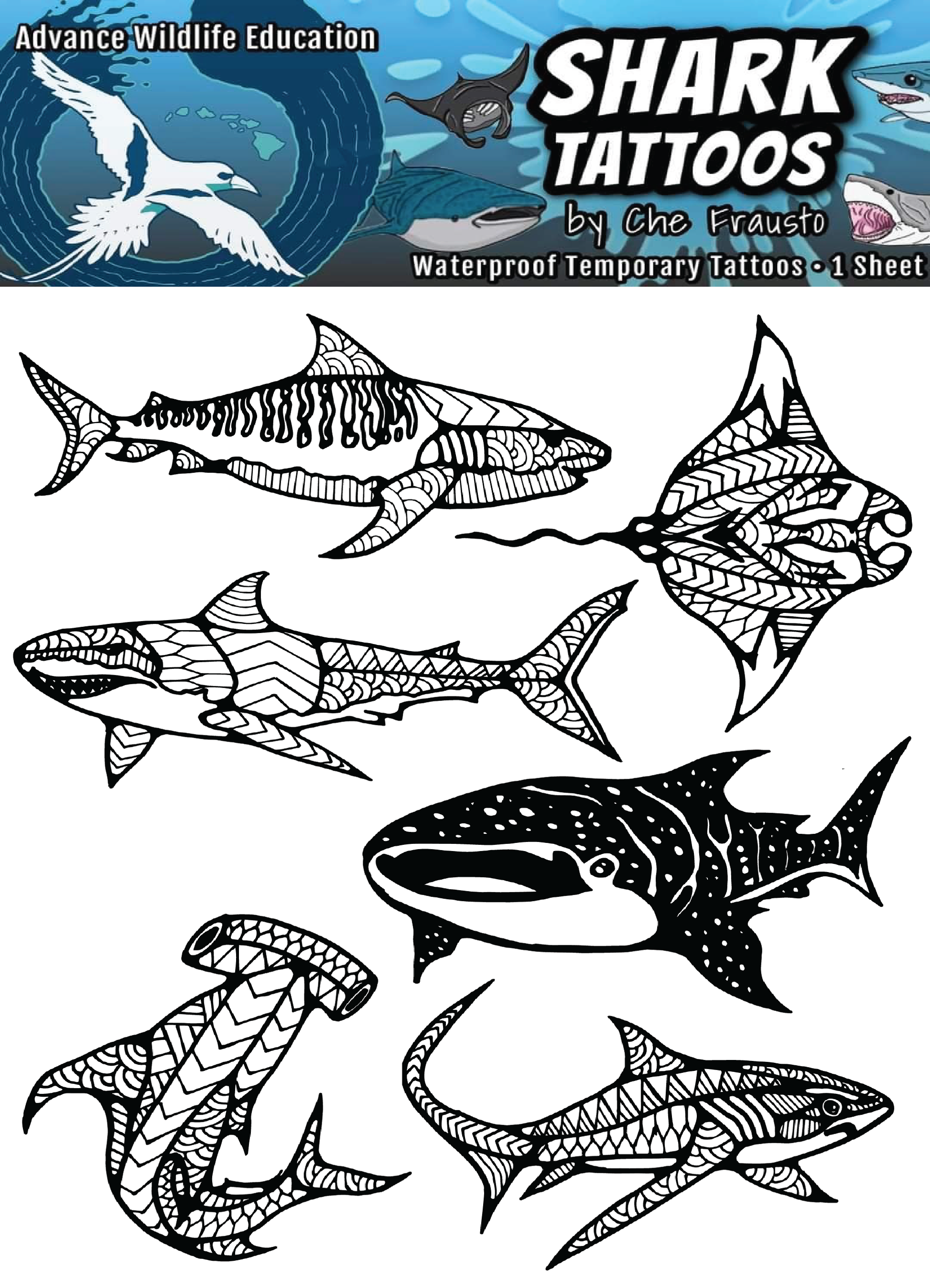 The back of the tattoo sheet provides educational information about different shark species, their ecological importance, and conservation status. These waterproof temporary tattoos are perfect for ocean enthusiasts, marine biology fans, or anyone who wants to help change perceptions about these often-misunderstood animals. Your purchase supports Advanced Wildlife Education's efforts to protect sharks through education and awareness programs that highlight their crucial role in healthy marine ecosystems.